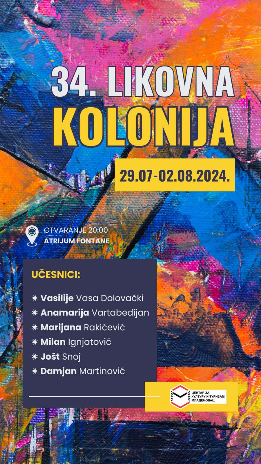 Značajan kulturni događaj u organizaciji Centra za kulturu u turizam Mladenovac, održan od 29.07.2024 god. do 02.08.2024god. U prelepom ambijentu Instituta za rehabilitaciju Selters, gde je kolonija bila smeštena, ujedno su stvarana nova umetnička dela koja će obeležiti deo kulturno-umetničkog stvaralaštva ovog vremena.
